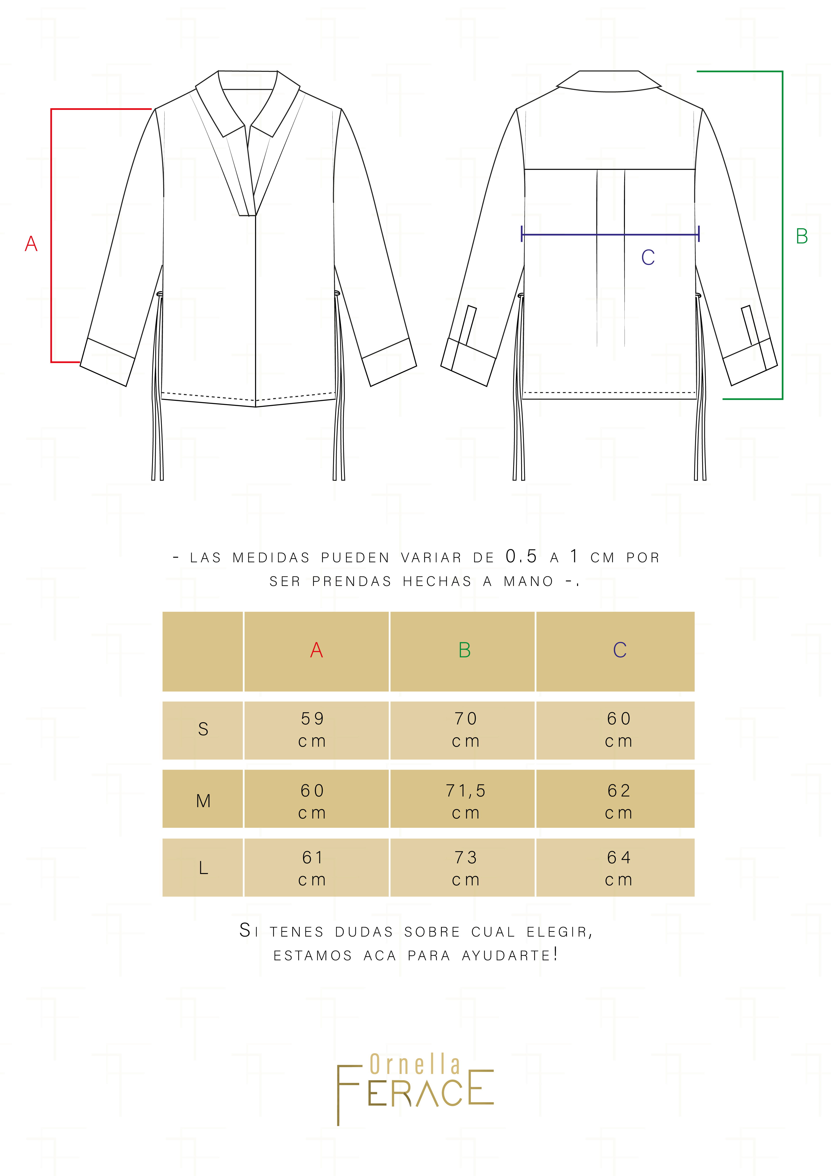 Esta prenda es confeccionada a pedido de manera artesanal, por lo tanto, solo se aceptan cambios/devoluciones por fallas.