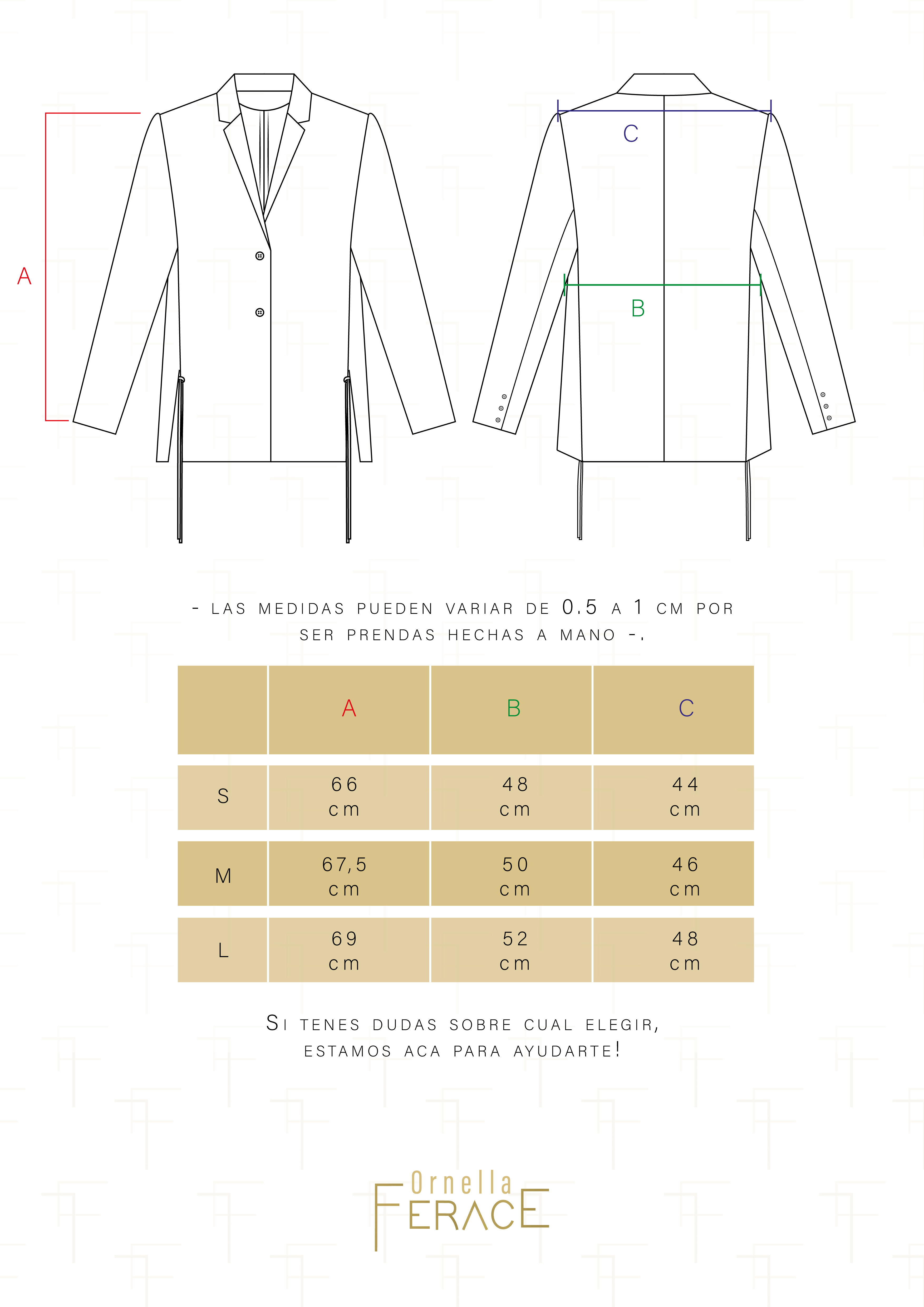 Esta prenda es confeccionada a pedido de manera artesanal, por lo tanto, solo se aceptan cambios/devoluciones por fallas.