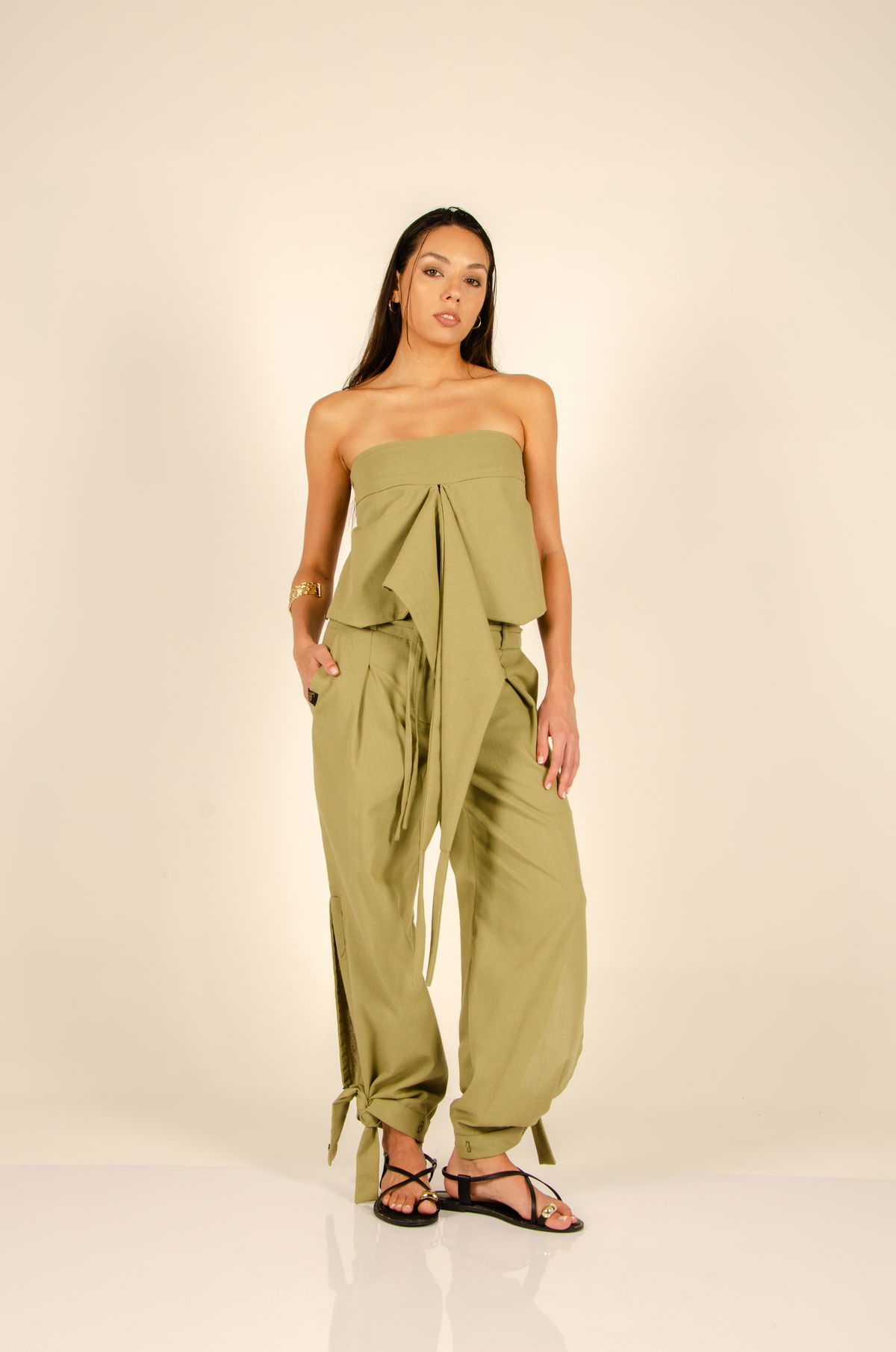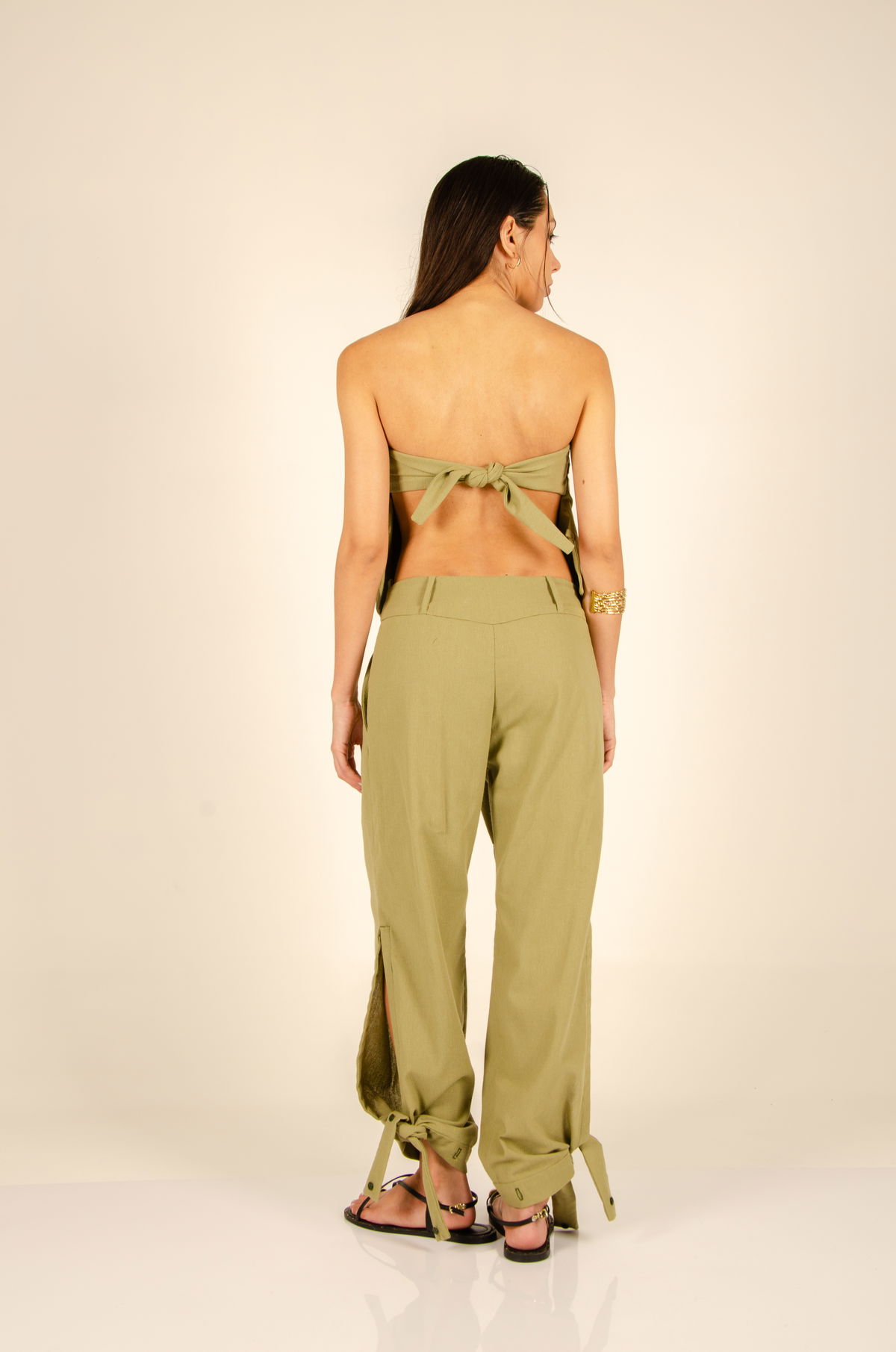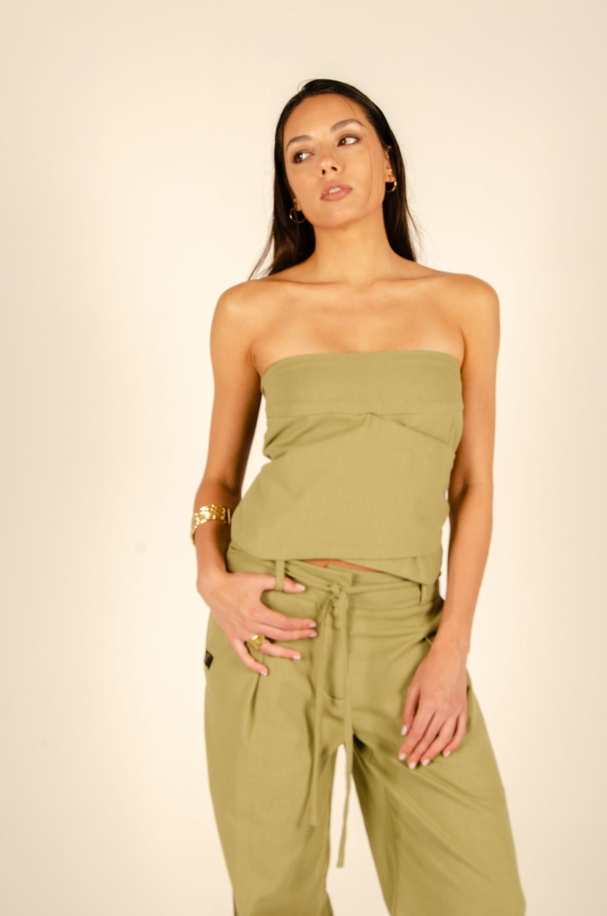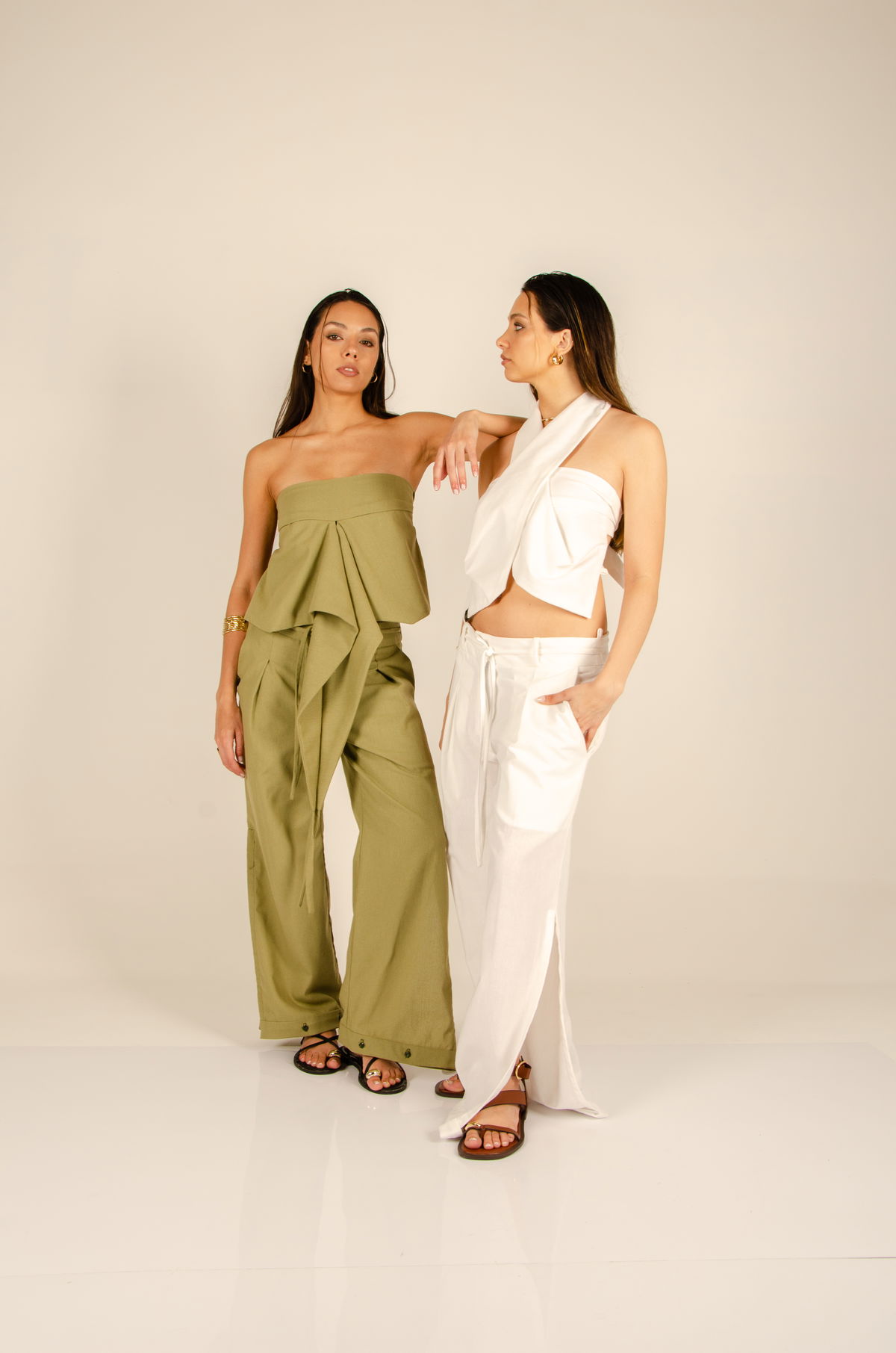 Top largo que se ata en la espalda y el cuello. Se puede usar de distintas formas dependiendo como se lo coloque. Se encuentra embolsado para que no transparente. Textil liviano y suave con estructura. Ideal para usar en distintas ocasiones dependiendo como se lo estilee.